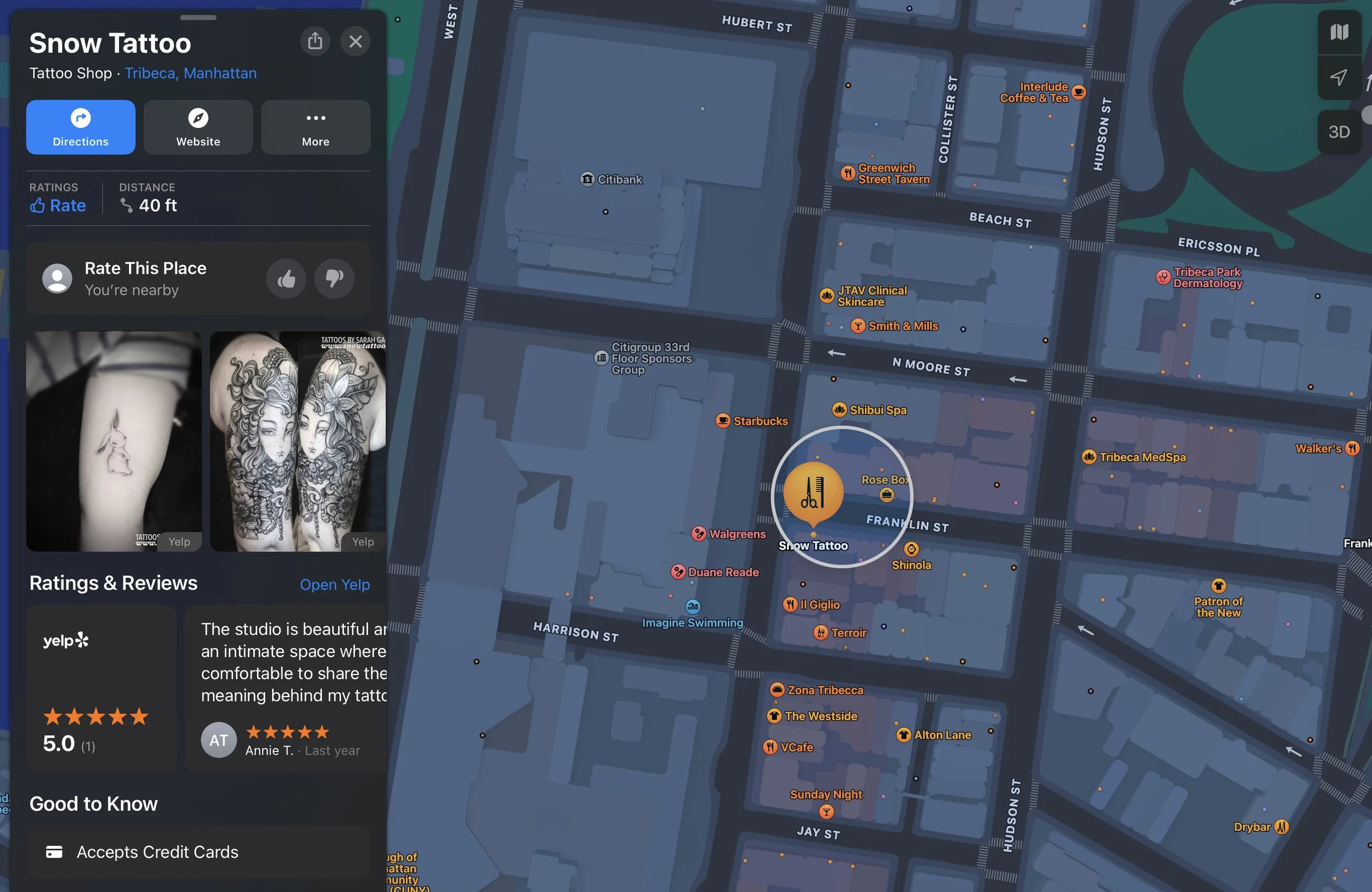 Snow Tattoo is located in Tribeca, New York.